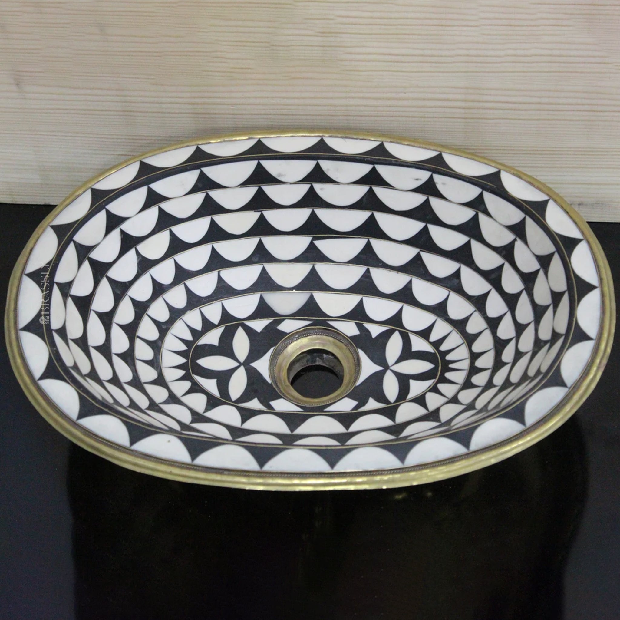 Brass bathroom sink, white and black pattern, copper resin vanity vessel sink