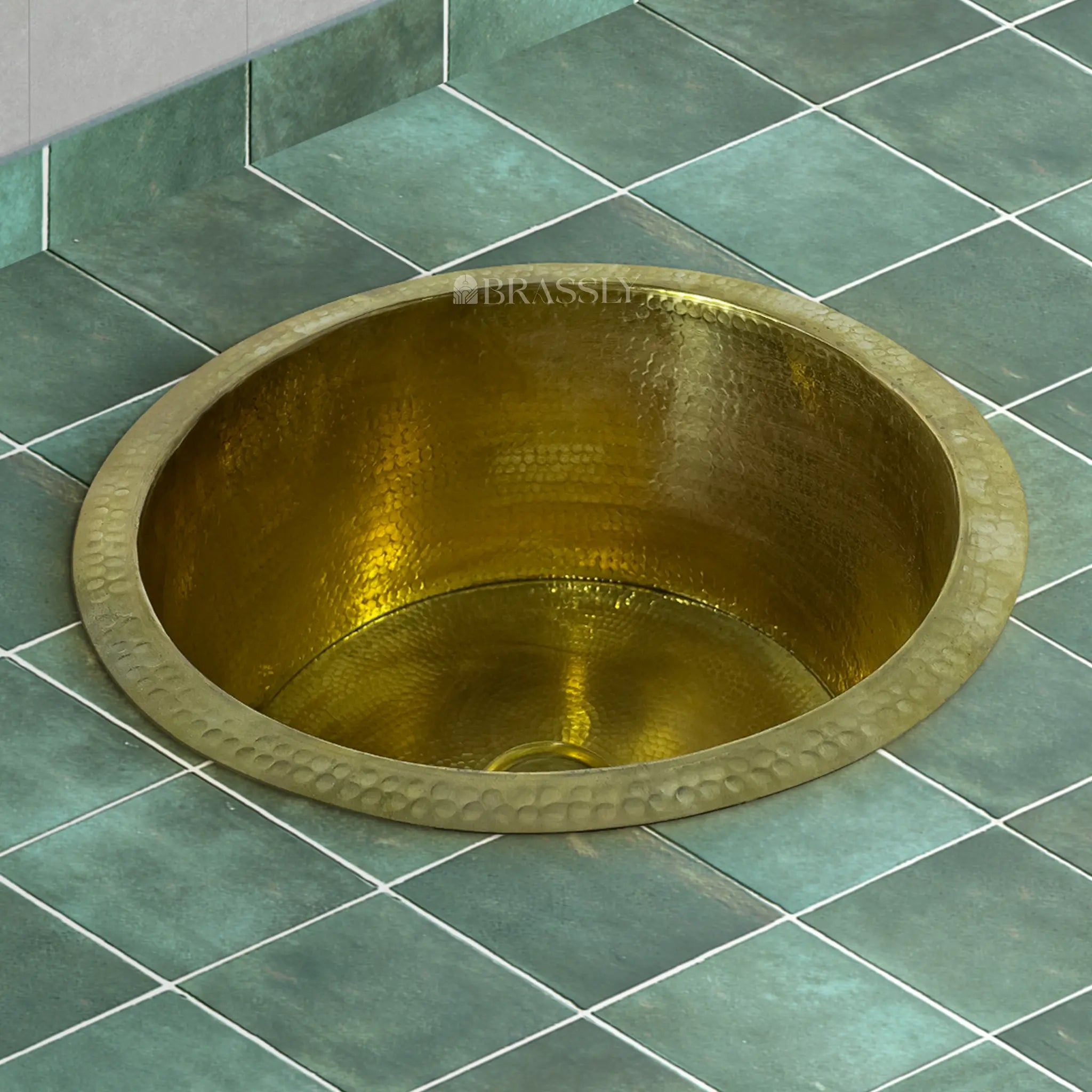Brass undermount sink, round bar sink with drain, hammered brass, smooth finish brass